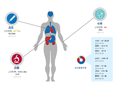 301健康管家评估系统能够在各种人群中分析其健康危险因素,建立生活方式、环境、遗传等危险因素与健康状态之间的量化关系,从而预测个人在未来5~10年内多种慢 性疾病的患病概率。本系统是以数据采集系统、健康档案系统、疾病异常库、危险因素库等为基础的。最终以图表数据的形式表现出疾病风险,同时提供饮食/运动/心理干预计划。